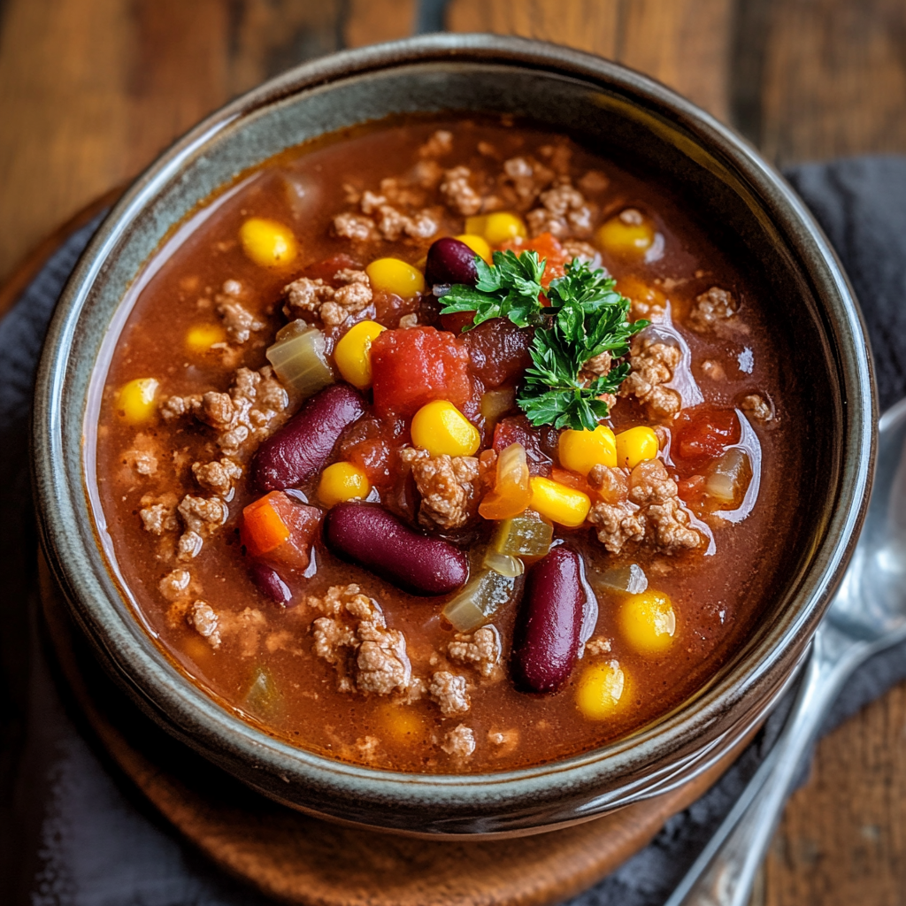 Crockpot Cowboy Soup is a hearty dish made with ground beef, beans, corn, and spices, cooked slowly for deep flavors.